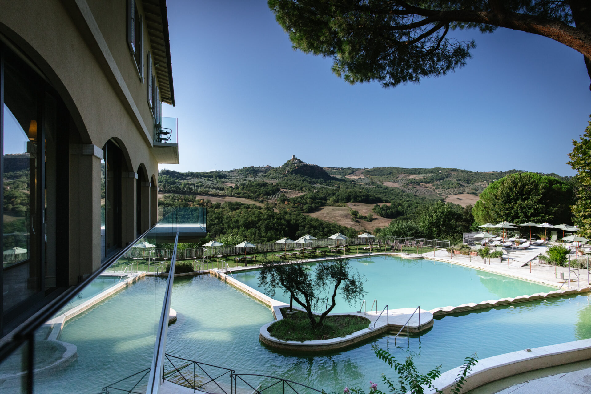 35 unique rooms overlooking the Tuscan countryside, thermal waters, and the simple pleasure of living well: from breakfast with a view of the Rocca to garden aperitifs and dinners rooted in local flavours.